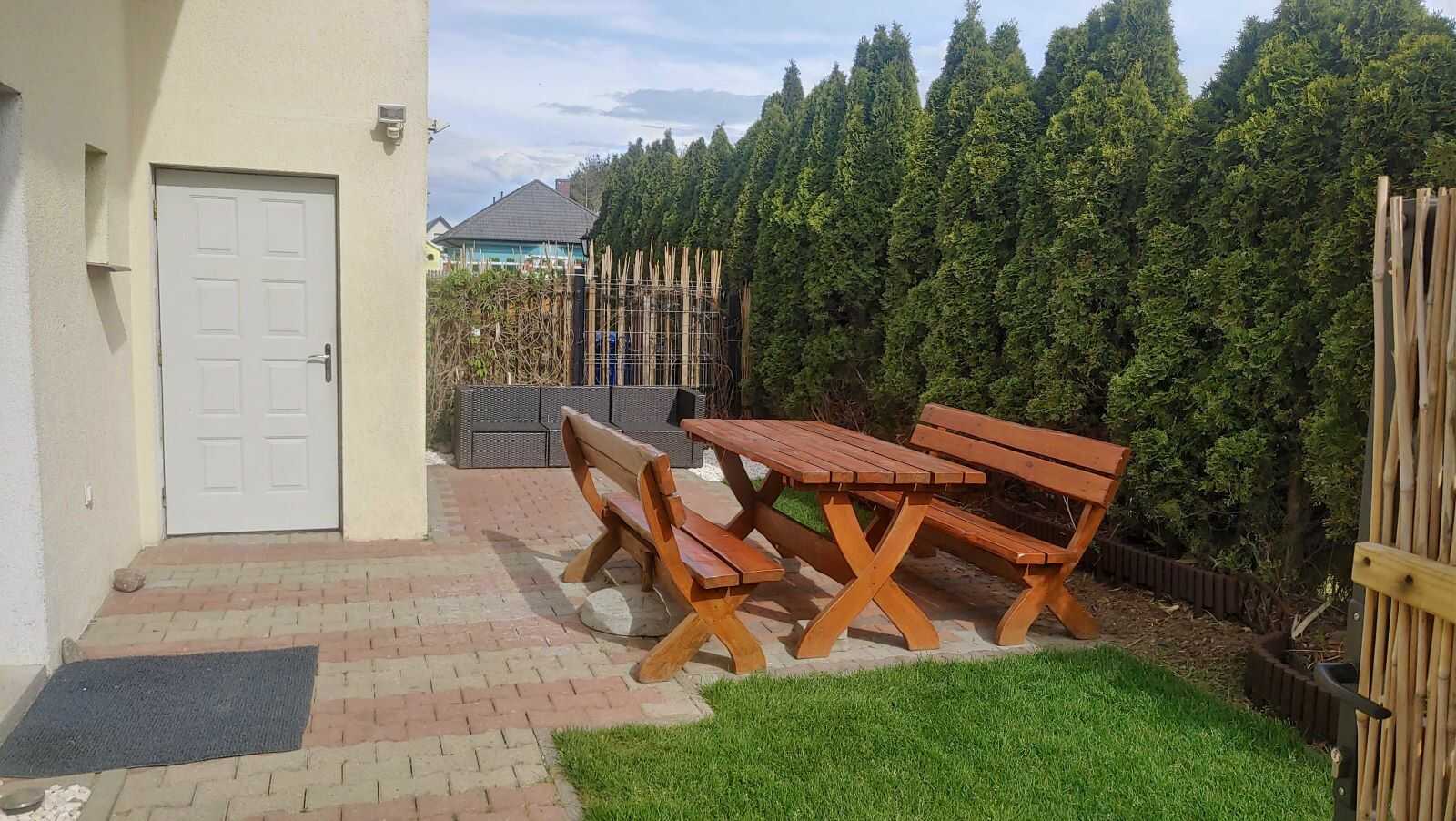 Do apartamentu przynależy ogrodzony zielenią, prywatny, zamykany na klucz ogród o powierzchni 72 m2 wraz z wyposażeniem obejmującym stół, leżaki i komplet wypoczynkowy oraz bezpłatne miejsce parkingowe na terenie posesji.