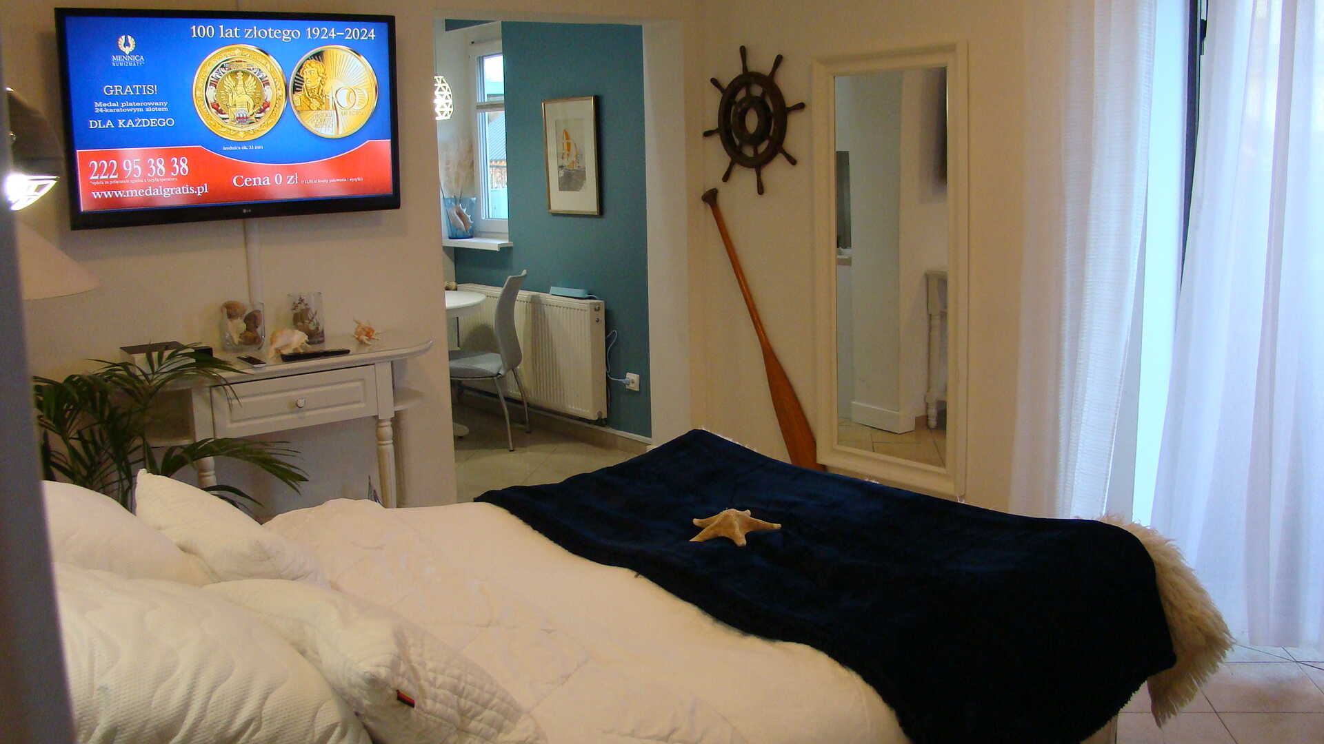 Apartament o łącznej powierzchni 35 m2 mogący pomieścić do 4 osób, znajdujący się na parterze budynku, z dwoma niezależnymi wejściami, składający się z sypialni, łazienki oraz pełnowymiarowej, nowoczesnej i w pełni wyposażonej kuchni wraz z wbudowaną pralką.